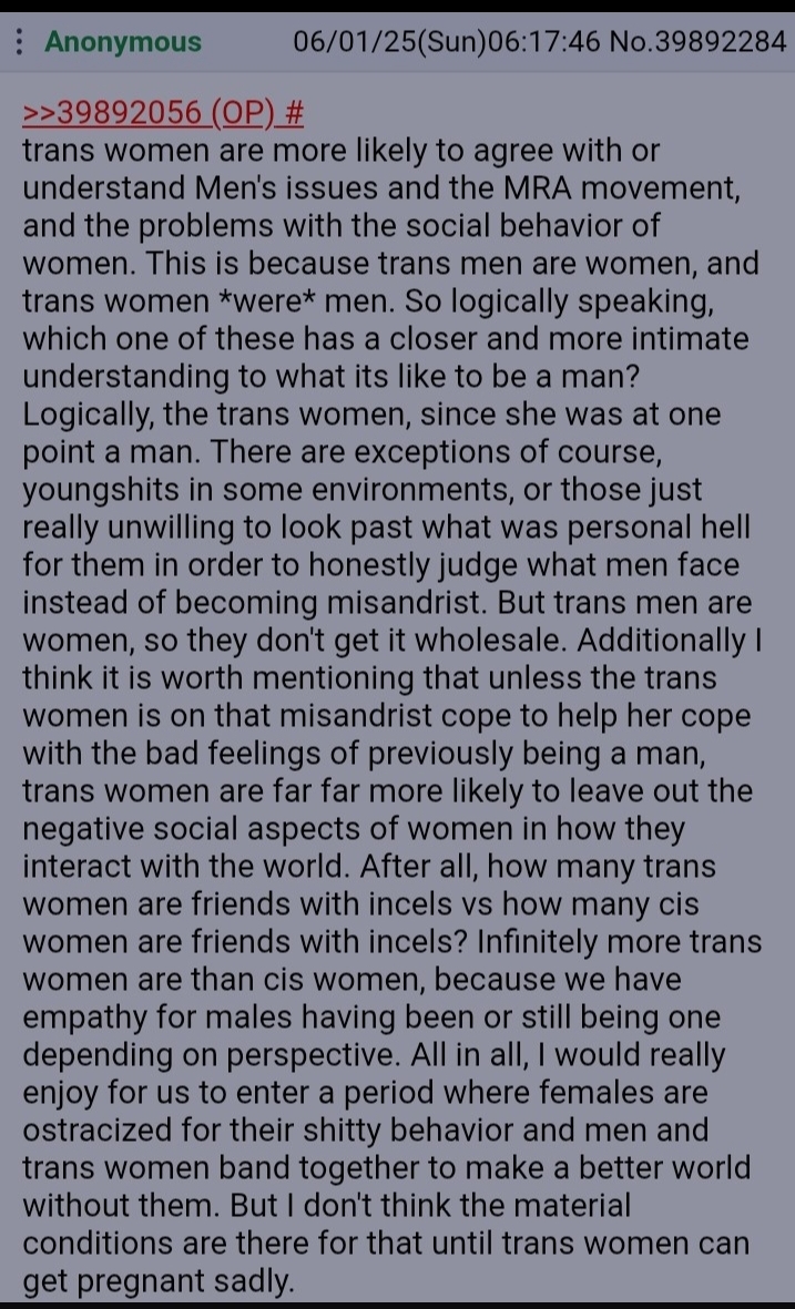 If you want to talk about Radfem/TERF/Gendercritical themes, do not make a new thread. Use the existing threads and keep discussion civil. You can read my thoughts on a radfem board here: