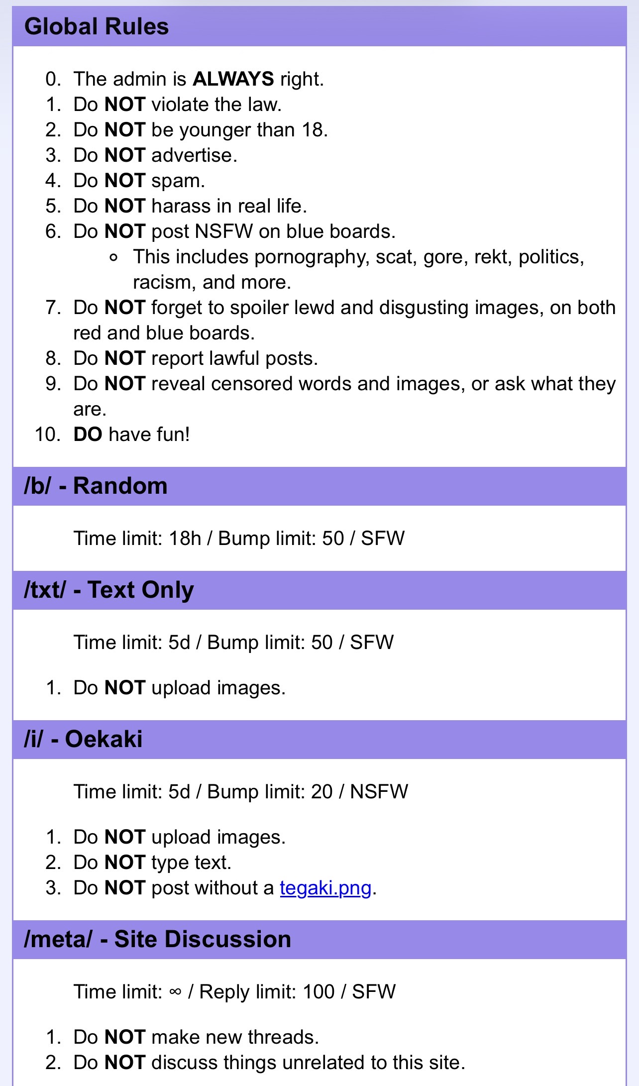 Do not make threads about the following topics or you will be banned for 7 days: