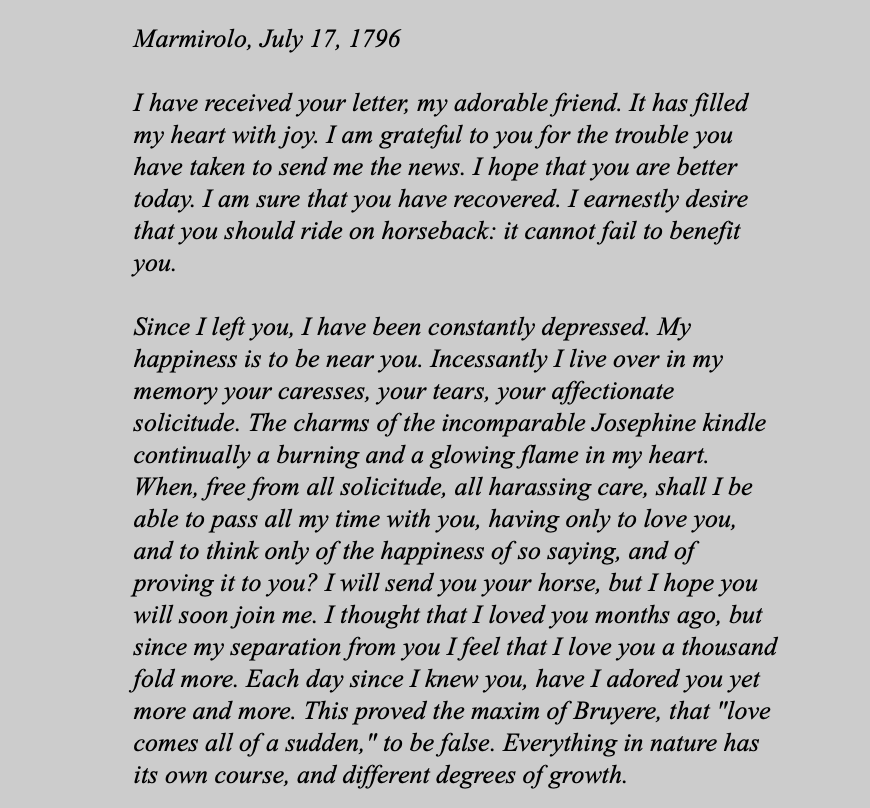 >>129533Napoleon usually wrote his letters while doing two or even three things at the same time. might have been geopolitic or diplomacy, or managing a network of spies. I wonder what else he did when writing this one.