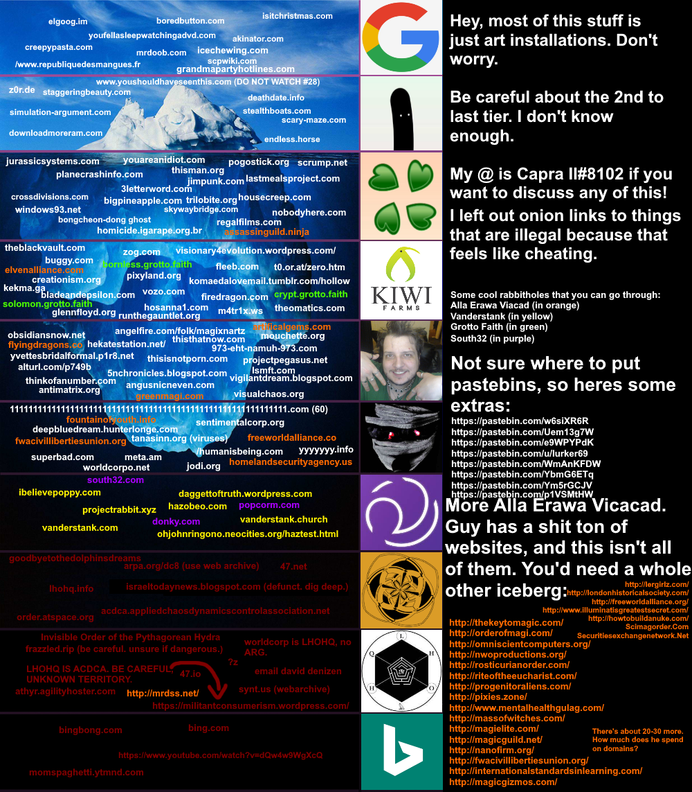 https://archive.ph/Mh8WD I wonder whether there's other cases like this, of people hiding cult messages within innocuous information. I know there's things like Google translate having weird cryptic translations, or the CIA hiding information in search functions as a log in feature instead, but I think I can only vaguely remember some cult (?) operating within the HTML code.